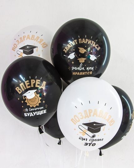 Также можно создать композиции из шаров в форме цифр, например, год выпуска, или создать надписи из шаров с именами выпускников или пожеланиями. Например, «Счастливого пути!», «Удачи во всех начинаниях!» или «Самые лучшие выпускники!».