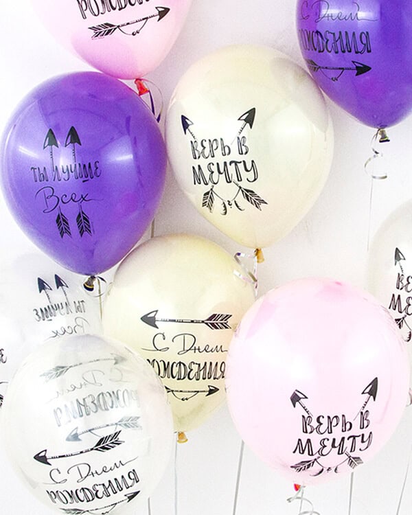 Шары с шелкографической многоцветной печатью и оригинальными дизайнами станут идеальным украшением праздничного торжества и поднимут настроение в любое время года.